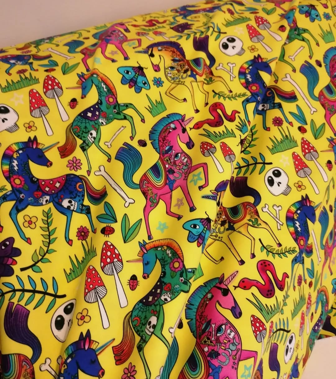 Kun haluat yksisarvisia ilman vaaleanpunaista, on valinta tämä vaihto-ehto yksisarviset pirteällä keltaisella pohjalla.